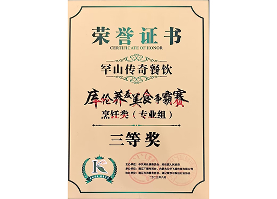 罕山傳奇餐飲榮獲庫倫蕎麥美食爭霸賽烹飪類專業(yè)組三等獎